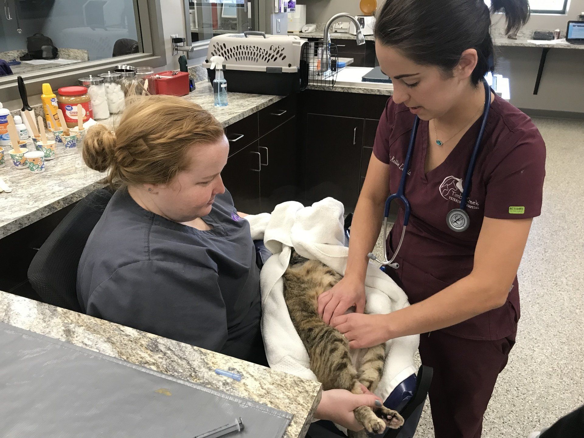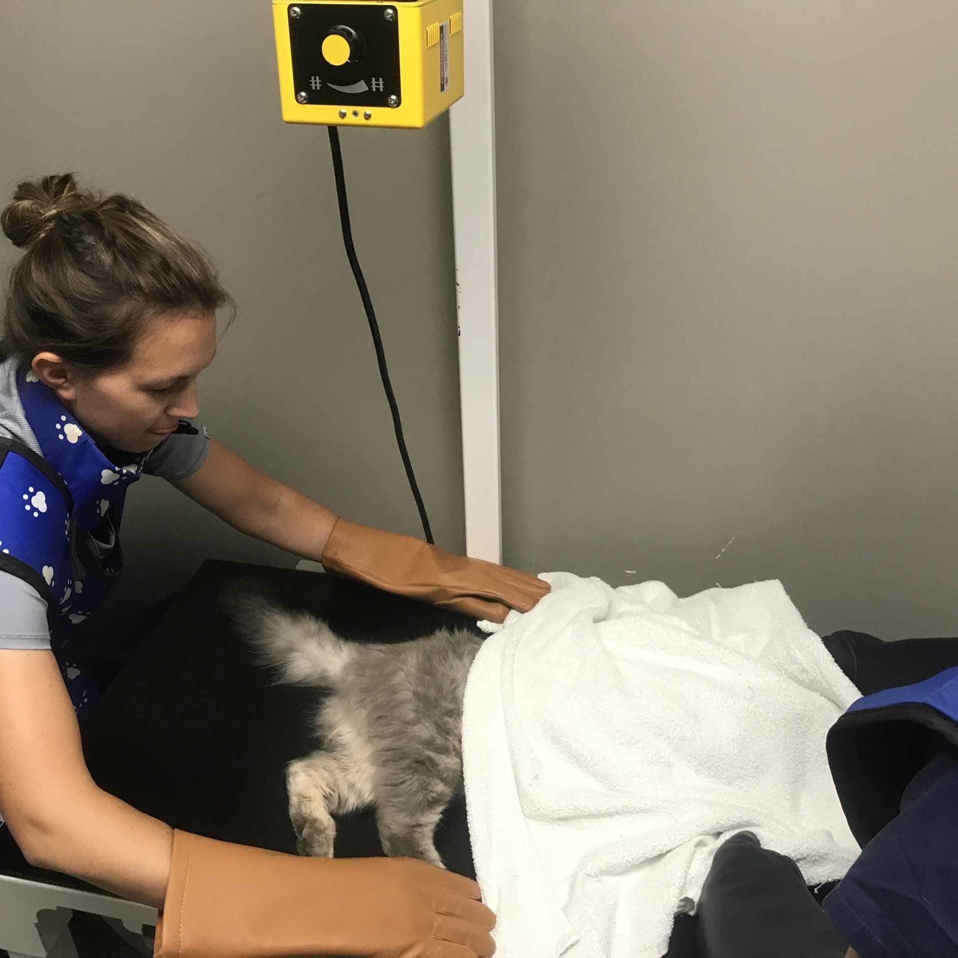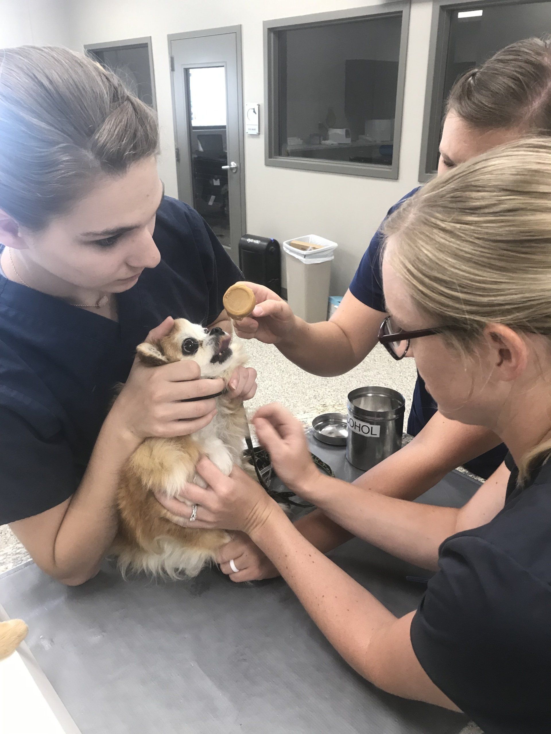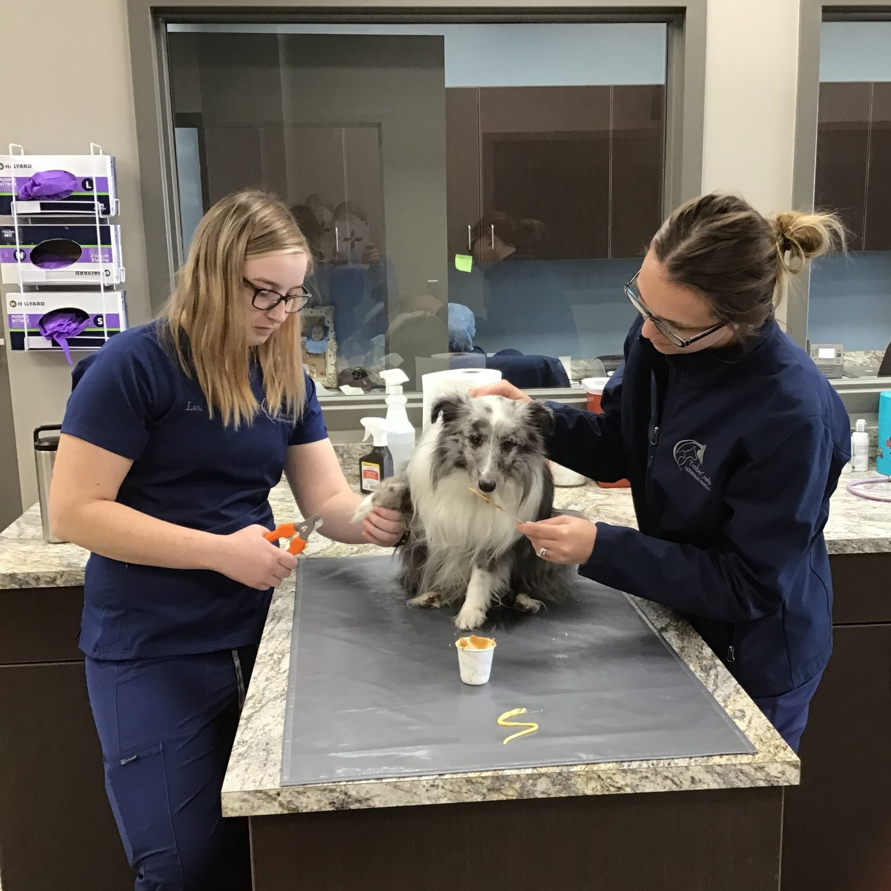 Fear free is a way of handling, examining, and performing treatments on animals that minimizes fear, anxiety, and stress. Leaving home, traveling in cars, and showing up in unfamiliar places with strange sights, smells, sounds, and people can be overwhelming to pets. This can cause them to behave in ways that are abnormal for them. By taking the extra time to help patients feel more comfortable and entice them with tasty treats, we can allow them to have more pleasant experiences here at the hospital. Fear free tactics can help decrease the stress at home before they ever step foot into the hospital. Our trained professionals are here to assist you from the beginning with those apprehensive trips to the vet.